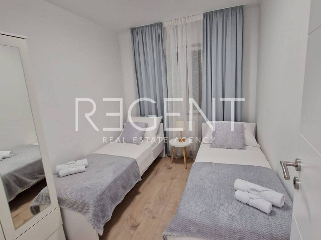U prizemlju privatne kuće nalazi se trosoban stan stambene površine 100 m² koji pruža udobnost i praktičnost za svakodnevni život. Stan se sastoji od tri prostrane spavaće sobe, dvije moderno uređene kupaonice te kuhinje povezane s blagovaonicom i dnevnim boravkom. Iz dnevne zone izlazi se u privatni vrt koji nudi prostor za odmor, druženje i boravak na otvorenom, a uz stan dolazi i vlastito natkriveno parkirno mjesto. Stan je u potpunosti namješten i opremljen kućanskim aparatima, što omogućuje novom najmoprimcu brzo useljenje. Podovi su izvedeni u kombinaciji parketa i keramike, a raspored prostorija funkcionalno je osmišljen. Zbog rasporeda prostorija i dvije kupaonice stan je idealan za studente koji žele dijeliti smještaj, ali imati i dovoljno privatnosti. U neposrednoj blizini, unutar 300 metara, nalaze se ljekarna, ambulanta, tri dućana, pekara i dvije autobusne stanice što svakodnevicu čini lakšom i praktičnijom. Stan je useljiv odmah. Za više informacija, kao i dogovor o razgledavanju, slobodno nas kontaktirajte!