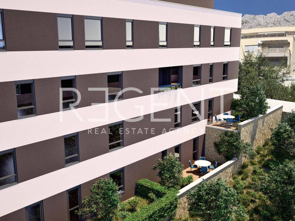 Posredujemo pri prodaji dvosobnog stana u novogradnji, smještenog u srcu Makarske. Savršen spoj modernog dizajna, kvalitete i fantastičnog pogleda na more. Ovaj stan, koji se nalazi na drugom katu zgrade, nudi sve što vam je potrebno za ugodan život u jednom od najljepših primorskih gradova.Stan ima ukupno 64,28 m2 stambene površine te se sastoji od: dva hodnika ukupne površine 3,22 m2 i 1,01 m2, kupaonice ukupne površine 5,01 m2, dvije spavaće sobe ukupne površine 12,08 m2 i 9,35 m2, dnevni boravak i kuhinja ukupne površine 29,14 m2, loggia ukupne površine 4,26 m2 te sprema ukupne površine 2,54 m2.Oprema stana obuhvaća najkvalitetnije materijale: kupaonice će biti u potpunosti opremljene sa svim sanitarnim elementima te sa podnim grijanjem u istima te će dnevni boravak i svaka spavaća soba imati inverter klima uređaj. Na podovima i zidovima kupaonica će se nalaziti moderna keramika većih dimenzija, walk in tuševi, podovi u ostatku stana će biti opremljeni kvalitetnim modernim dekorativnim (mamut) laminatom ili keramikom (po želji kupca). Na prozorima će biti zaštita od kiše i sunca – roletne sa električnim podizačima, kako bih osigurala trajnost i vrhunsku kvalitetu života.Stan također uključuje jedno garažno parkirno mjesto brutto površine 12 m2.Zgrada je pozicionirana na blagoj uzvisini, pružajući vam nesmetani pogled na Jadransko more. U blizini stana nalaze se svi potrebni sadržaji, uključujući dječje vrtiće, osnovnu školu, gimnaziju, bolnicu, policijsku postaju, trgovine te prekrasne plaže.Za više informacija, kontaktirajte nas već danas!