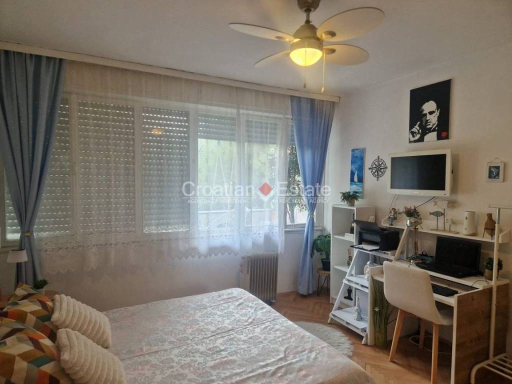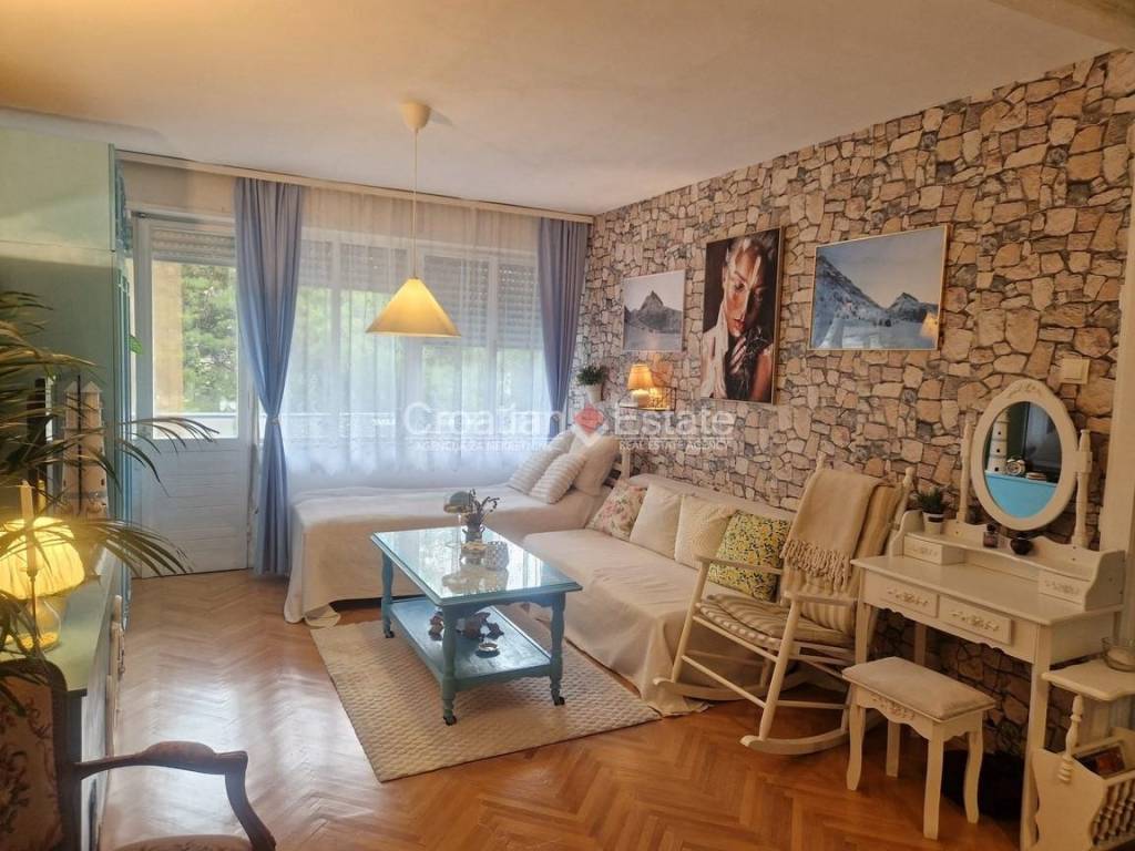 Iznajmljujemo lijep i sunčani jednosobni stan smješten na prvom katu stambene zgrade svega par minuta hoda od centra grada. Stambena površina stana iznosi 53m2, a sastoji se od hodnika, dnevnog boravka s blagovaonicom, kuhinje, spavaće sobe i lođe koja se prostire dužinom cijelog stana.