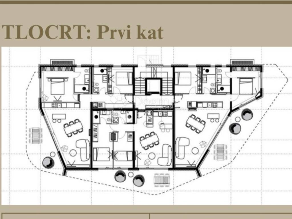 Dizajn zgrade nadahnut je jedinstvenim položajem uz more i blagim spuštanjem terena, s naglaskom na kvalitetu gradnje i udobnost stanovanja. AB konstrukcija zgrade bez stupova s iznimnom statikom uz zakrivljene balkone čini nekretninu praktičnom, protočnom te jedinstvenom. Projekt obuhvaća deset stambenih jedinica, podijeljenih na 3 kata po tri stana s otvorenim pogledom na more i prekrasnim Penthouseom od 301 m2 na samom vrhu koji posjeduje terasu sa zimskim vrtom.