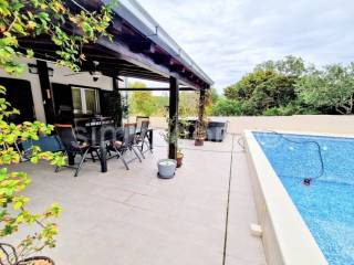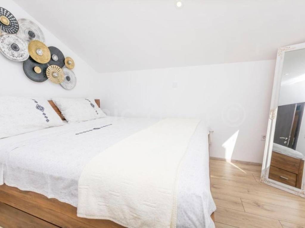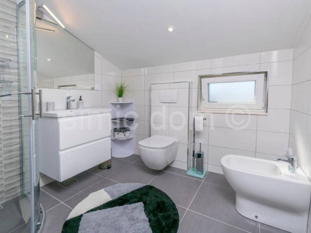 Na prodaju je izuzetno dobro održavana i odlično uređena kuća u samoj Rogoznici. Kuća se sastoji od podruma, prizemlja i dva kata ukupne bruto površine 260m2, odnosno ima tri apartmana. U podrumu se nalazi spremište od oko 10m2, dok je na svakoj gornjoj etaži po jedan apartman, svaki sa zasebnim ulazom. U prizemlju kuće nalazi se najveći apartman koji se sastoji od hodnika, spremišta odnosno garderobe, dvije prostrane spavaće sobe, te dvije kupaonice. Tu je i predivna kuhinja sa blagovaonicom i dnevnim dijelom otvorenog koncepta iz koje se izlazi u stražnje popločano dvorište sa bazenom, sunčalištem i sjedećom garniturom. Apartman u prizemlju opremljen je podnim grijanjem u svim prostorijama. Na prvom nalazi se apartman sa dvije spavaće sobe, a na drugom katu apartman sa jednom spavaćom sobom. Svaki naravno ima i kupaonicu te kuhinju u dnevni boravak te predivne prostrane terase, dok apartman na drugom katu ima i lijep pogled na more i Rogoznicu. U sklopu okućnice nalazi se i roštilj te parking za tri automobila. Kuća je izuzetno dobro opremljena, vanjska stolarija je PVC, sa aluminijskim griljama, na kući je napravljena izolacija, nove instalacije struje i vode su nove, i svi apartmani su klimatizirani. Sva oprema i namještaj uključeni su u cijenu. Kuća se nalazi na odličnoj lokaciji, 5 minuta pješice do centra i prve plaže, a u neposrednoj blizini su i svi ostali sadržaji. Kuća je odlična kao investicija za najam, ali i za življenje.