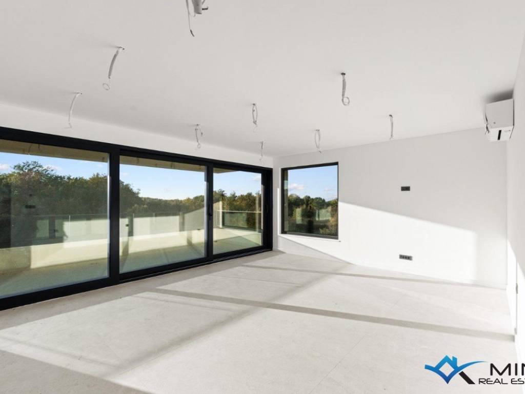 Prodaje se atraktivan penthouse nedaleko Poreča udaljen 2500 m od mora i lijepo uređene plaže te centra grada. Penthouse je smješten u manjoj zgradi od ukupno 5 stanova te se nalazi na 2. katu zgrade. Sastoji se od ulaznog hodnika, prostorije za tehniku, praone, wc-a, 2 kupatila, 4 spavaće sobe, garderobe i open space prostora u kojem su smješteni kuhinja, blagovaonica i dnevni boravak. Dnevni boravak i kuhinja imaju velike staklene stijene s izlazom na prostranu natkrivenu terasu od 36 m2 s lijepim pogledom na prirodu. Stan ima prostranu terasu od 200 m2 sa koje se pruža panoramski pogled na prirodu. Grijanje u stanu je putem dizalice topline, a hlađenje je putem klima uređaja. Stan je opremljen aluminijskom stolarijom sa troslojnim staklom, električnim podizačima roleta i komarnicima. Stanu pripadaju 3 parkirna mjesta.