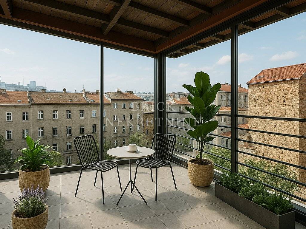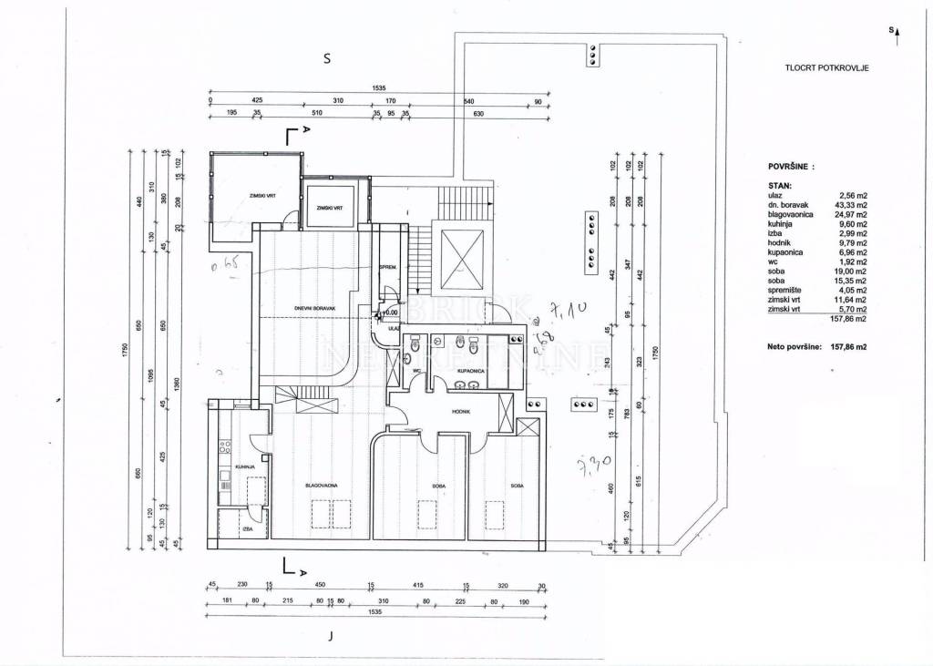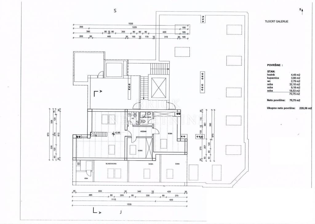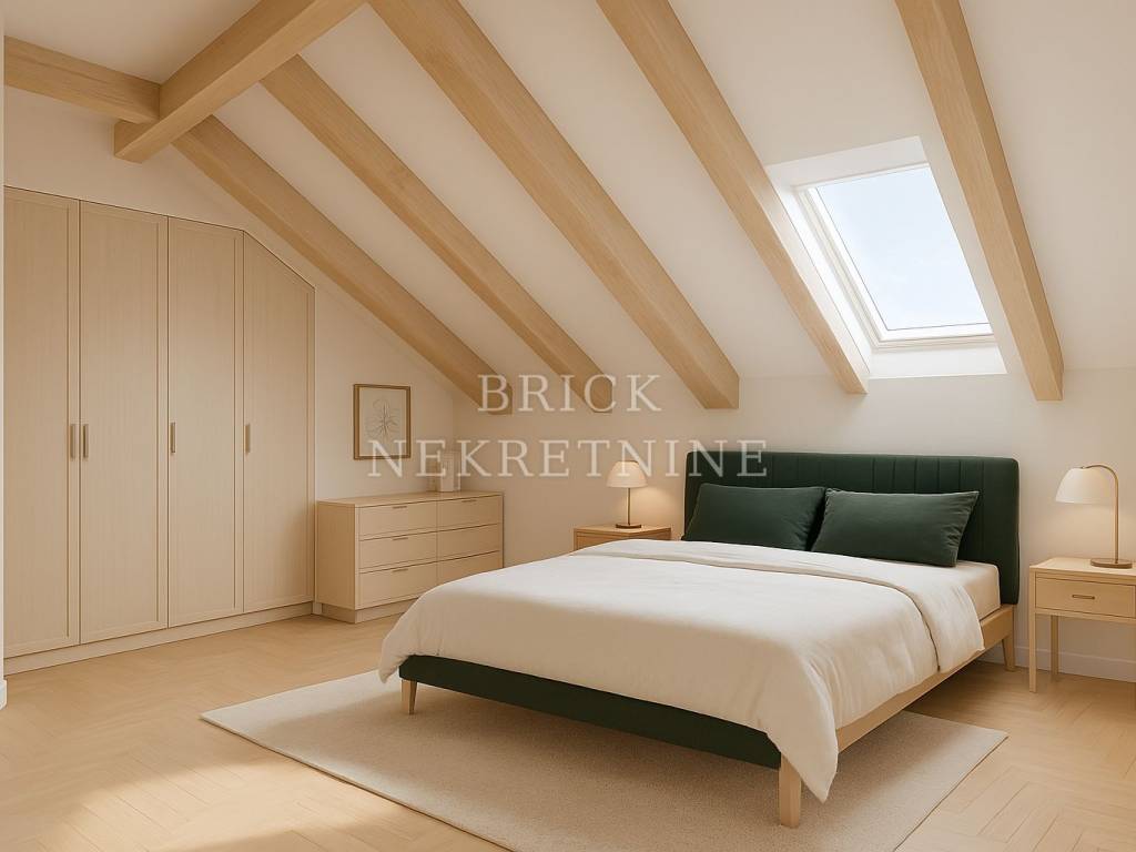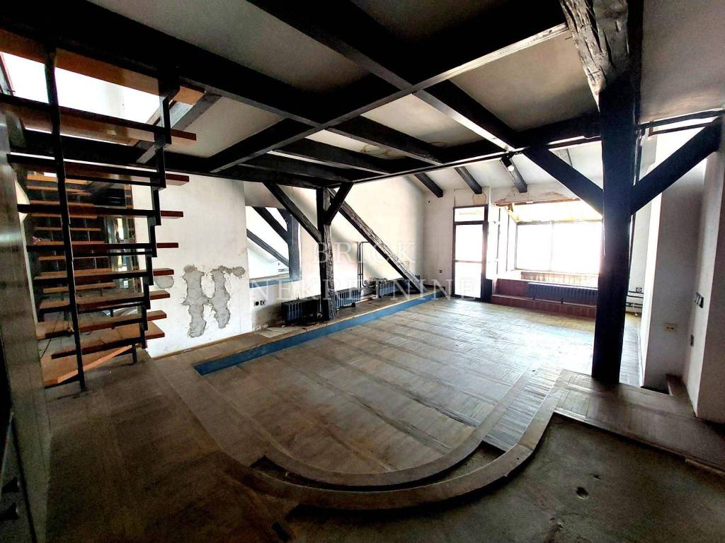 Prodaje se dvoetažni šesterosoban stan površine 229 m2 u potkrovlju zgrade bez lifta.