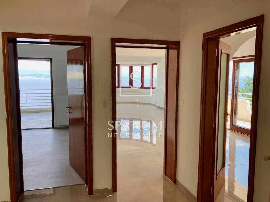 OPATIJA, u ponudi je prostran adaptiran stan na traženoj lokaciji s otvorenim pogledom na more. Stan pokriva cijelu etažu zgrade te zahvaljujući velikim staklenim stijenama i četverostrukoj orijentaciji, prostorije su ispunjene obiljem prirodnog svjetla tijekom cijelog dana. Gotovo iz cijelog stana pruža se predivan pogled na more i centar Opatije. Tlocrtni raspored odlično odvaja spavaći dio s dvije sobe i dvije kupaonice od glavnog stambenog prostora gdje je predviđeno mjesto za veliku kuhinju, dnevni boravak i posebno mjesto za blagovaonski stol s jednim od najljepših pogleda na rivijeri. Sveukupni ugođaj upotpunjuju vanjski prostori, prostrane terase pogodne za sunčanje, ispijanje jutarnje kave ili večernje čaše vina u društvu obitelji i prijatelja. Stanu pripada jedno vanjsko parkirno mjesto.
