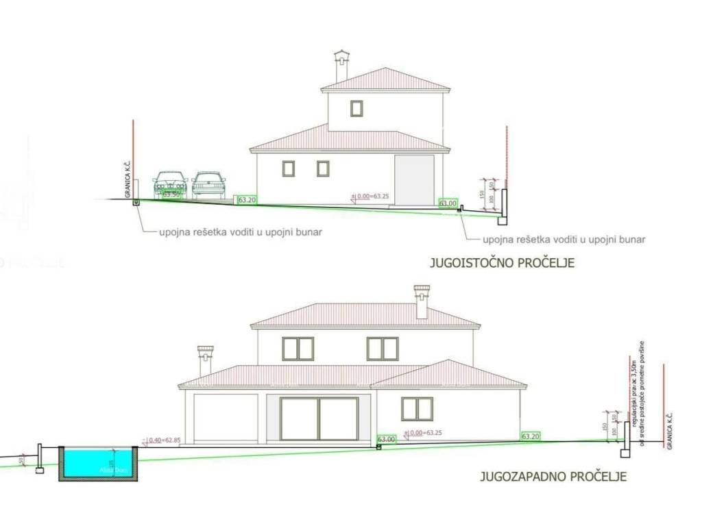 Prodajemo kuću u izgradnji u neposrednoj blizini grada Pule.Kuća modernog dizajna, sastoji se od prizemlja i 1.kata, koji uključuju: prostrani dnevni boravak, kuhinju, blagovaonicu, više spavaćih soba i kupaonica. Na prostranoj okućnici nalazi se natkrivena terasa i bazen idealan za uživanje tijekom ljetnih mjeseci.Uz objekt su predviđena i tri parkirna mjesta, osiguravajući praktičnost i udobnost budućim vlasnicima.Lokacija na kojoj se nalazi kuća pruža mir i privatnost, a istovremeno se nalazi u neposrednoj blizini svih potrebnih sadržaja i samo nekoliko minuta vožnje od centra Pule te prekrasnih plaža i prirodnih ljepota Istre.Napomena: Kuća se prodaje po naznačenoj cijeni u Roh bau fazi.Za dodatne informacije, molimo kontaktirajte:Azra+385 91 611 5706+385 98 420 885 azra@almadominvest.com