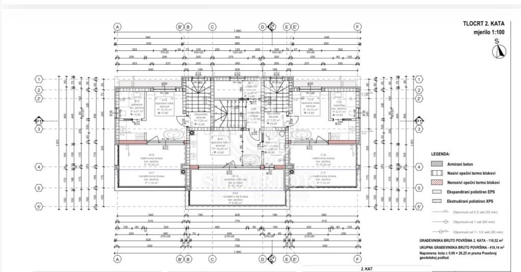 - 2. kat: master spavaća soba, vlastita kupaonica, terasa, spremište/garderoba