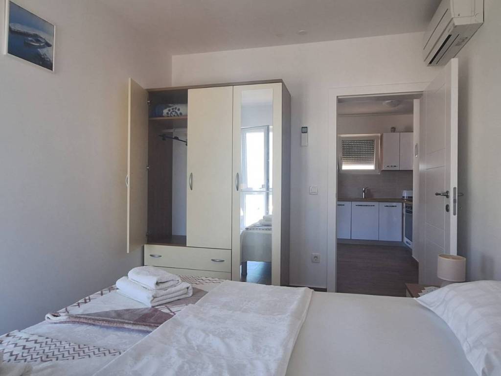 Stan se sastoji od: Ulaznog hodnika Dnevnog boravka s izlazom na loggiu Kuhinje i blagovaonice u otvorenom konceptu Dvije spavaće sobe Moderne kupaonice s walk-in tušem Loggie s trajno otvorenim pogledom na more Spremište u podrumu (posebno vrijedno!) Spremište je uredno, prostrano i idealno za bicikle, sezonske stvari, opremu i sve što želiš maknuti iz stana velika prednost koja značajno povećava funkcionalnost.