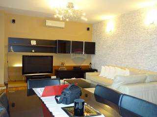 Na samo 200 m udaljenosti od glavne plaže u Ičićima u novogradnji na 1. katu imamo u ponudi moderno uređen, luksuzni apartman od 150 m2 sa predivnim pogledom na more. Apartman se sastoji od prostranog predsoblja, dnevnog boravka (sa kaminom), kuhinjom i blagovaonom s izlaskom na prostrani balkon, kupaonice sa WC-om, spremišta, vešeraja (utility room). Spavaći dio odvojen je hodnikom od dnevnog dijela a sastoji se od glavne sobe (master room) sa vlastitom prostranom kupaonicom sa WC-om i loggiom, veće sobe koja isto ima izlaz na loggiu, te manje sobe (pogodne za dječju sobu ili radnu sobu). Sa balkona i loggie pruža se lijepi pogled na more. Kompletan apartman ukrašen je dizajnerskim namještajem i kvalitetnim tehničkim uređajima renomiranog proizvođača. Apartman posjeduje žaluzine sa električnim podizanjem, parlafon, alarmni sustav, te protuprovalna vrata. Grijanje je etažno na plin i još svaka soba posjeduje kvalitetan klima-uređaj (grijanje/hlađenje). Apartmanu pripada garaža u čijem produžetku se nalazi taverna za druženje sa TV-om, kuhinjom,kupaonice sa WC-om i spremištem, te je opremljena i klima uređajem. Na okućnici je i parking novogradnje gdje ovom apartmanu pripada još jedno vanjsko parkirno mjesto. Okućnica je kompletno ograđena i uređena ukrasnim mediteranskim biljem, a ulaz je organiziran na daljinsko otvaranje.