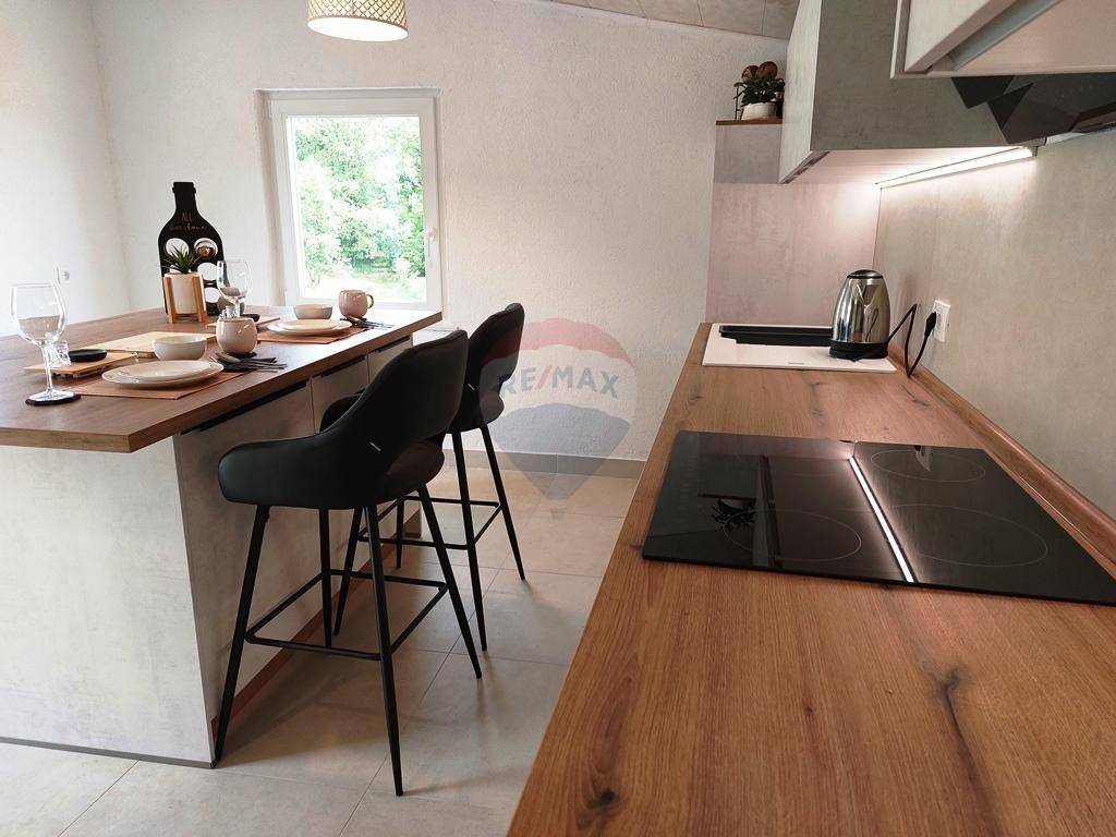 Dva stana su kategorizirana kaoi apartmani, na I katu 2S+DB od cca. 110m2 i jednosobni stan 40m2 na II katu s terasom.