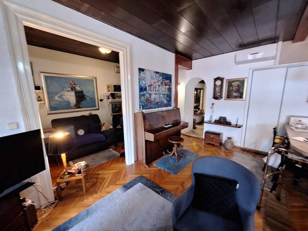 Stan ima površinu od 53 m2, a pripada mu i konoba u prizemlju koja je uređena kao apartman s galerijom.