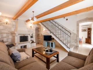 Ova rustikalna ljepotica površine 140 m² nalazi se na kraju niza, čime je osigurana potpuna privatnost, a raspored prostorija pažljivo je osmišljen za maksimalnu udobnost: