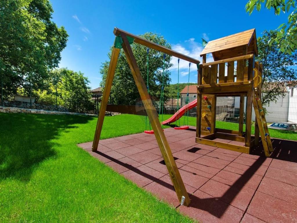 Za obitelji s djecom ili investitore u turizam, poseban bonus predstavlja ograđeno privatno dječje igralište od 120 m², a iza njega dodatna građevinska parcela od 200 m² – idealna za parkiralište, vrt ili budući pomoćni objekt.