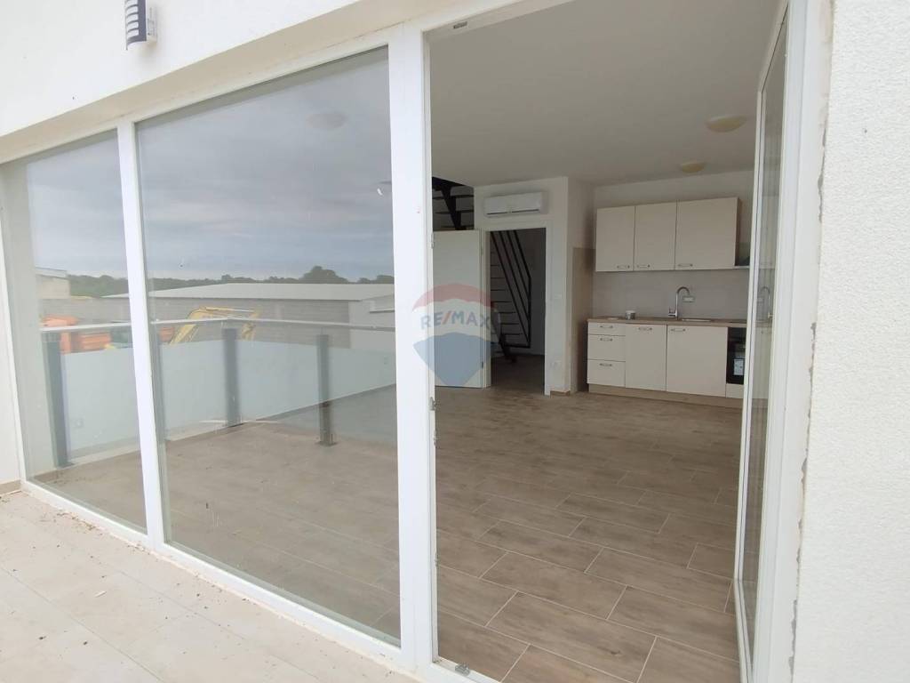 Prizemlje - Prostrani stan s dvije spavaće sobe, velikom kupaonicom i dodatnim toaletom. Otvoreni koncept dnevnog boravka, kuhinje i blagovaonice pruža maksimalnu udobnost, dok terasa s direktnim izlazom na bazen omogućava uživanje u privatnosti i luksuzu.