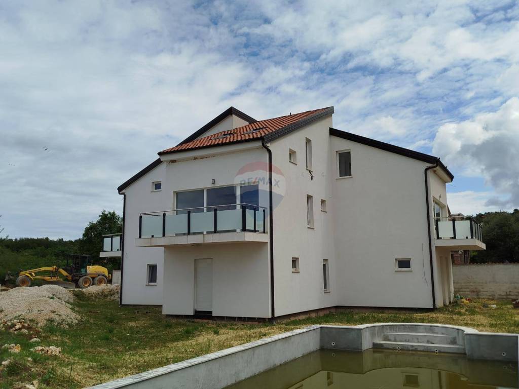 Na prodaju je moderna apartmanska zgrada s četiri odvojena stana i vanjskim bazenom, smještena na izvrsnoj lokaciji s otvorenim pogledom na more. Nekretnina nudi savršenu ravnotežu između privatnog stanovanja i potencijalne zarade od turističkog najma, zahvaljujući odličnom rasporedu i blizini svih sadržaja.