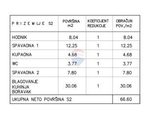 odvojenog toaleta, terase i vrta. Stan je neto korisne površine 66.60m2 a vrt je 120m2 (reducirane površine 12m2).