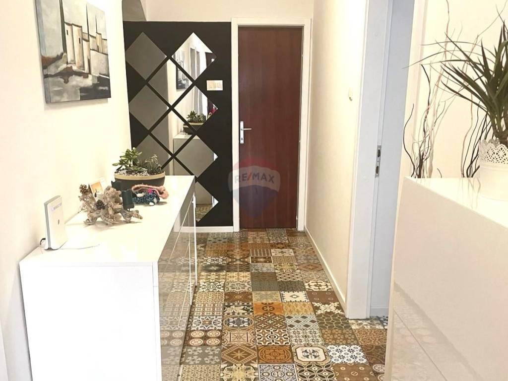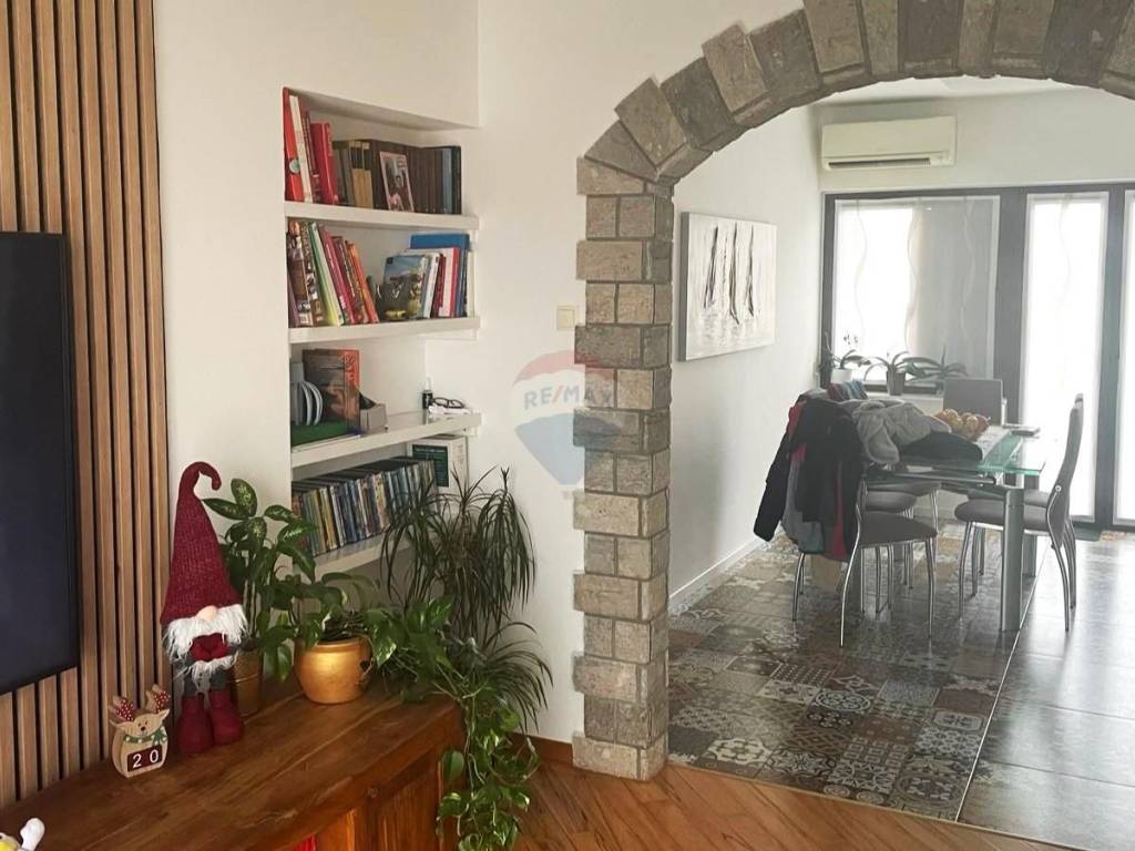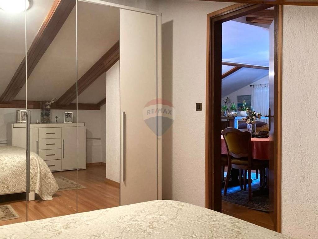 Potkrovlje čini 115 m2 i sastoji se od dnevnog boravka s kuhinjom i blagovaonom, dvije spavaće sobe, kupaone i ostave sa predivnim pogledom na more.