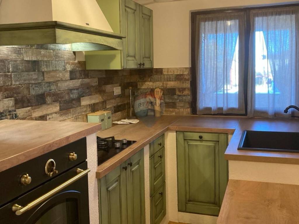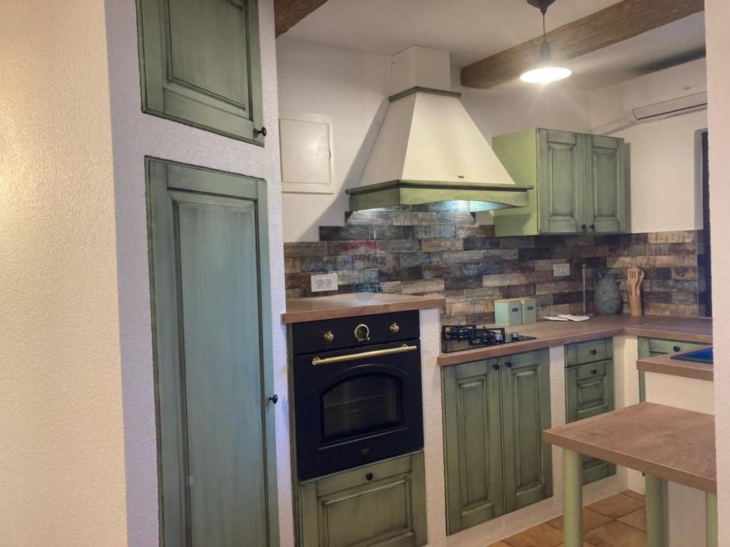 U prizemlju obiteljske kuće nalazi se apartman površine 45 m2, koji se sastoji od dnevnog boravka, kuhinje s blagovaonom te jedne spavaće sobe i kupaone.