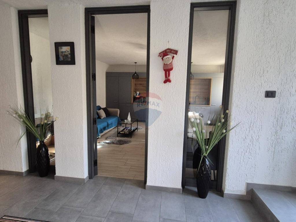 Kuća u prizemlju ima stan koji se sastoji od dnevnog dijela tj. kuhinje sa dnevinm boravkom i blagovaonom, prostran ulazni hodnik, sobu, kupatilo, vešeraj i spremište ukupne površine 85m2.