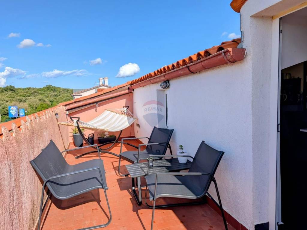 Uz stan dolazi i dio okućnice s vanjskim roštiljem i terasom od preko 50 m2, savršenima za uživanje u toplim danima i druženje na otvorenom. Plaža je udaljena oko 1 km, što ovu nekretninu čini pogodnom kako za obiteljski život, tako i kao isplativu investiciju za turistički najam.