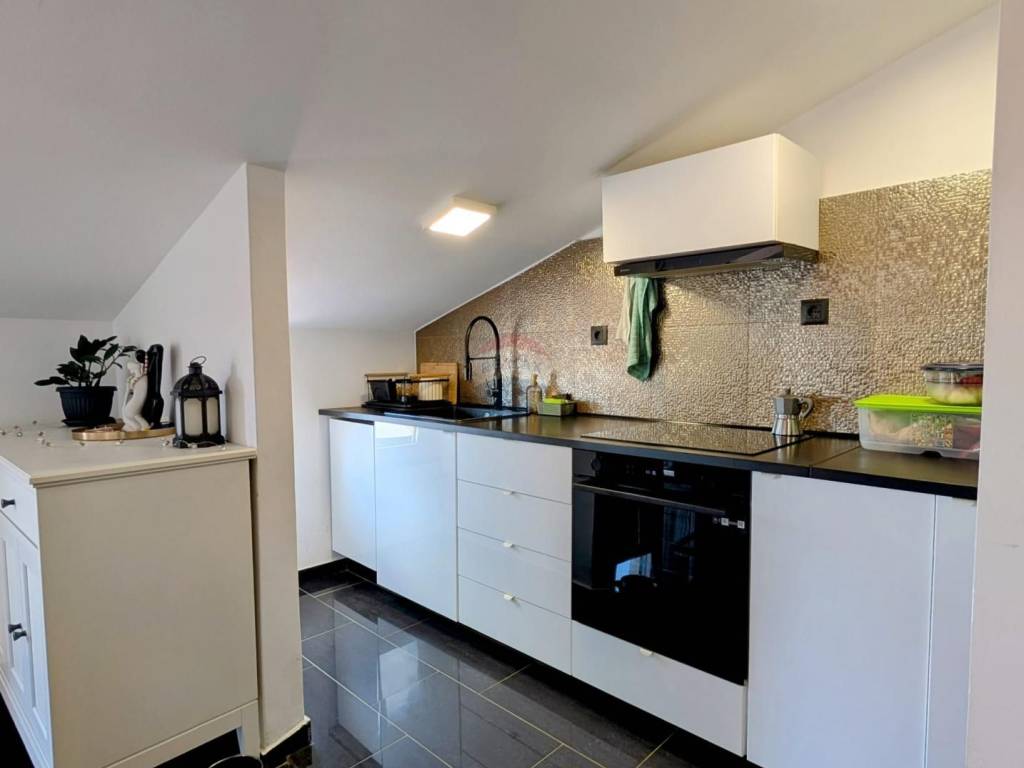 Prodaje se stanu u potkrovlju manje stambene zgrade, ukupne površine 92 m². Zgrada datira iz 1980-ih godina, a stan je djelomično renoviran tijekom 2023. godine.