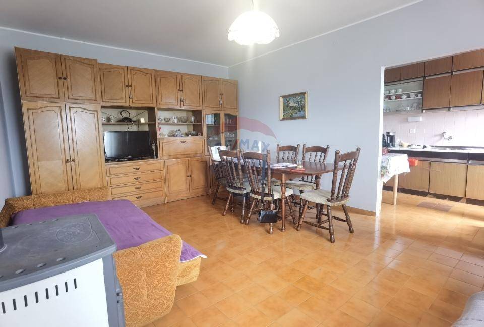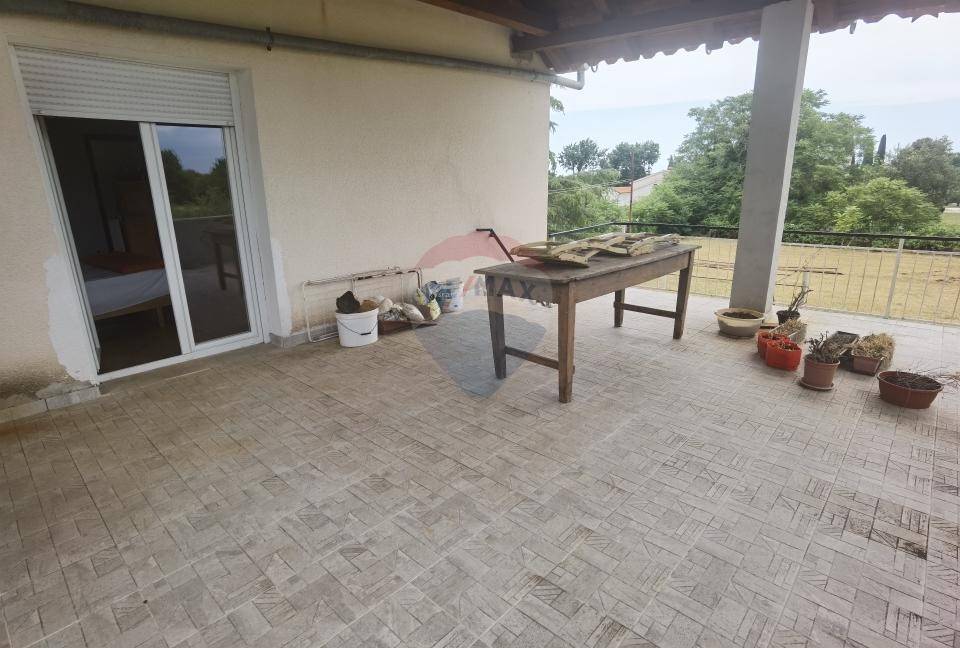 Na prvom katu ima tri sobe, jednu kupaonicu, kuhinju s ostavom i hodnikom, te vrlo prostrana natkrivena terasa ispod koje se nalazi garaža, a iznad kata nalazi se i visoki tavan.