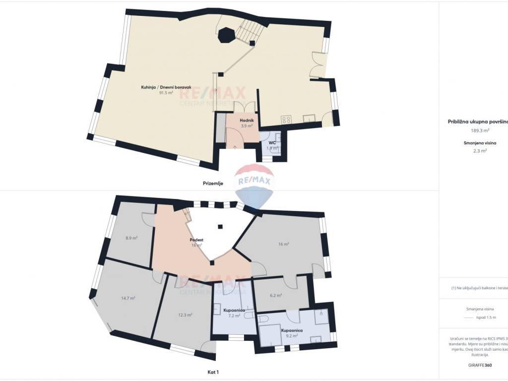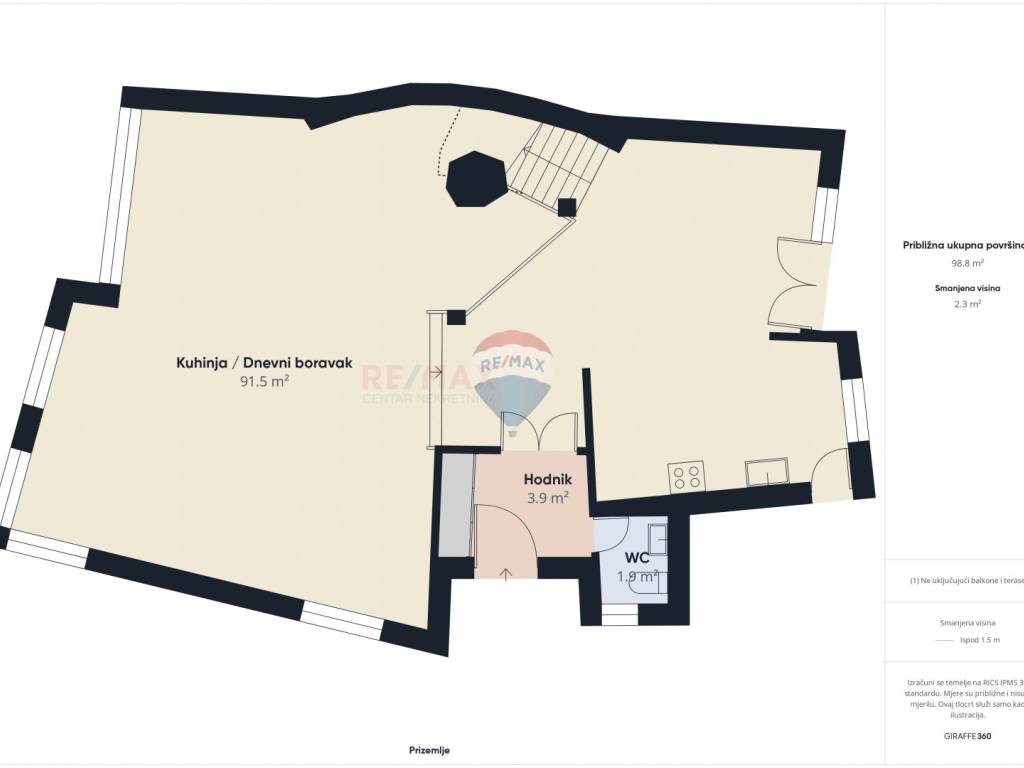 Površina kuće je 320 metara četvornih (tlocrtno 129 m2), a uređenog dvorišta 667 m2. Od centra grada udaljena je desetak minuta vožnje automobilom, a od park šume Maksimir svega nekoliko minuta.