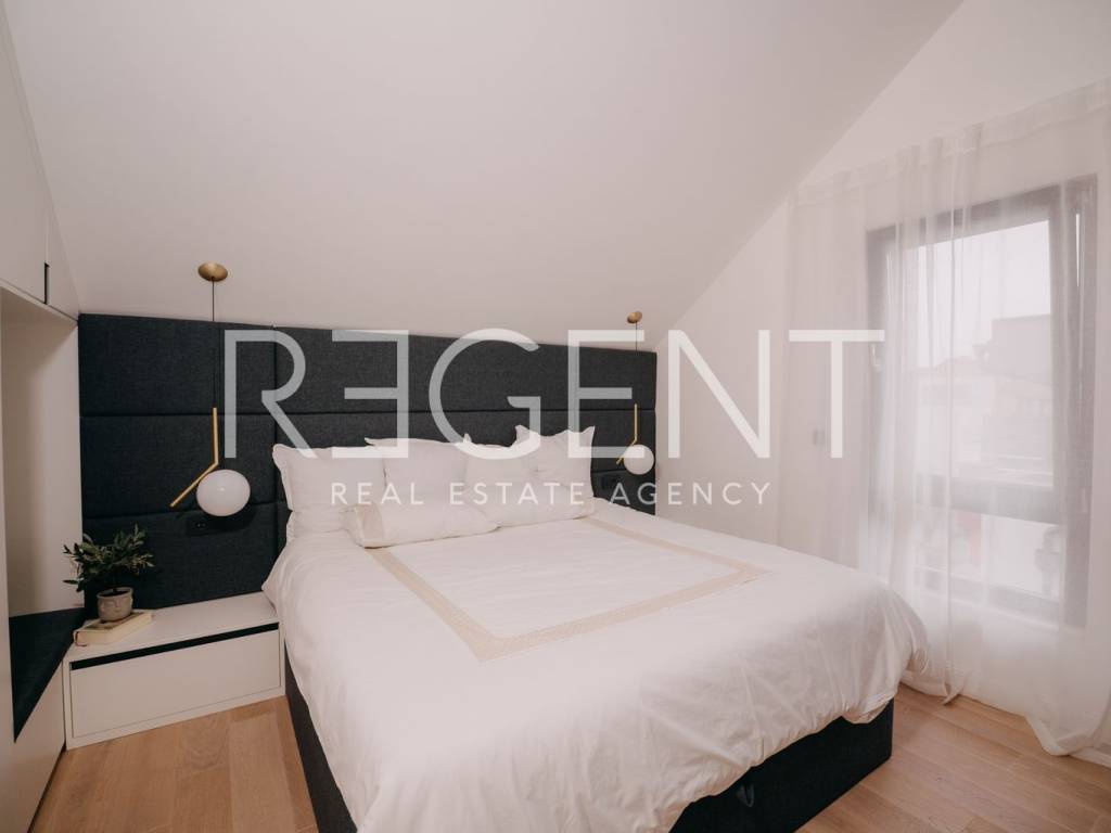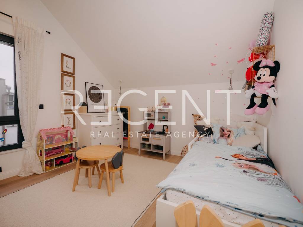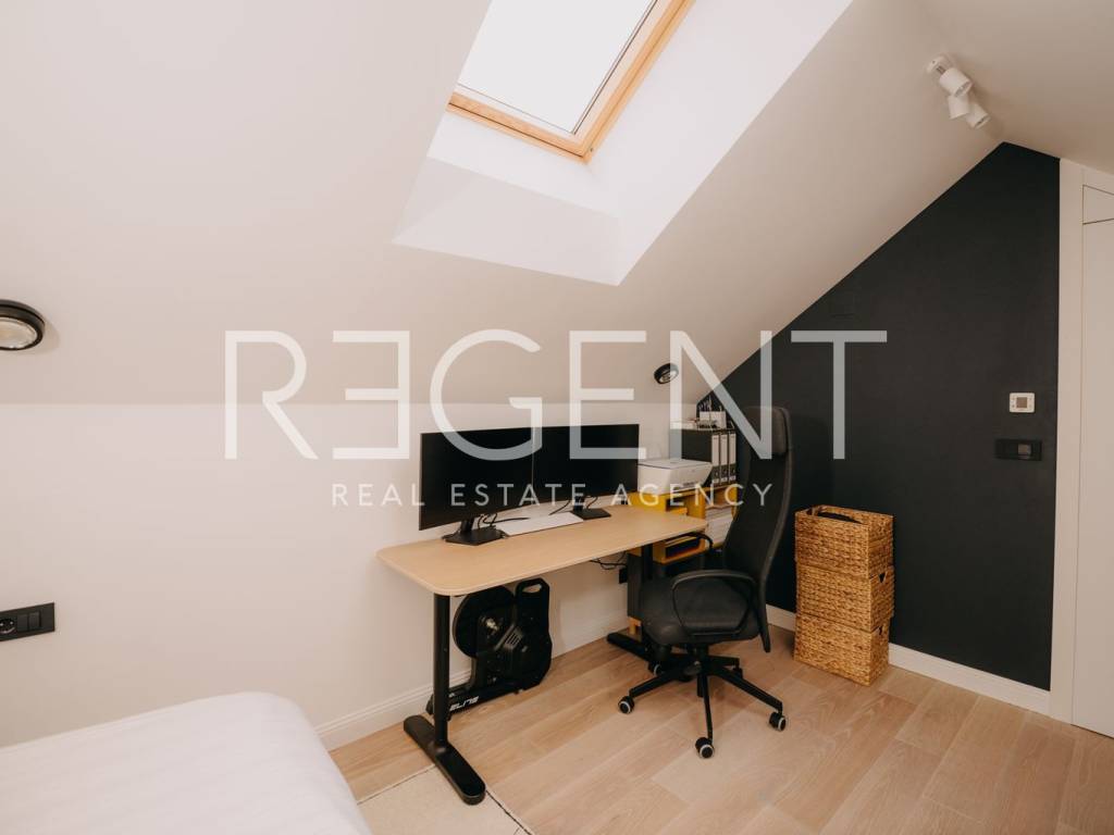 Prodaje se luksuzni penthouse u modernoj zgradi s osam stanova na atraktivnoj lokaciji u srcu Jaruna. Stan je idealan za obitelji, parove ili pojedince koji žele spoj vrhunskog dizajna, komfora i privatnosti u mirnom dijelu grada, a u neposrednoj blizini svih potrebnih sadržaja. Penthouse se prostire na 165 m² neto korisne površine i sastoji se od predulaza s ugradbenim cipelarnikom, prostranog open space dnevnog boravka, kuhinje s otokom i blagovaonice, ostave koja se nadovezuje na blagovaonu, malog predsoblja s dva ugradbena ormara, tri spavaće sobe (uz mogućnost izvedbe i četvrte), dvije kupaonice te dva natkrivena balkona sa sky free pergolama. Uz stan dolaze tri garažna parkirna mjesta i dodatna ostava u garaži. Zgrada je novije gradnje, arhitekturu i interijer potpisuje renomirani studio NFO. Ugrađeno je Kone dizalo s direktnim pristupom stanu, video nadzor, ulaz na otisak prsta, a upravljanje Velux krovnim prozorima i roletama moguće je putem daljinskog upravljača i mobilne aplikacije. Stan ima stropno grijanje i hlađenje pomoću dizalica topline uz individualnu regulaciju temperature u svakoj prostoriji. Prostor je opremljen vrhunskim materijalima i dizajnerskim namještajem – dnevni boravak Prostoria, kuhinja Knapić, uređaji Miele, blagovaona Natuzzi, ugradbeni ormari i kupaonice Stolarija Breza, rasvjeta Prgin, vrata Titan te kupaonski elementi Villeroy & Boch. Zgrada se nalazi u mirnoj ulici u blizini Jarunske tržnice, osnovnih i srednjih škola, vrtića, doma zdravlja, trgovina i javnog prijevoza. Jarun nudi bogate sportske i rekreativne sadržaje, jezero, šetnice te odličnu povezanost s ostatkom grada. Za sve dodatne informacije i dogovor oko razgledavanja stana, slobodno nas kontaktirajte.