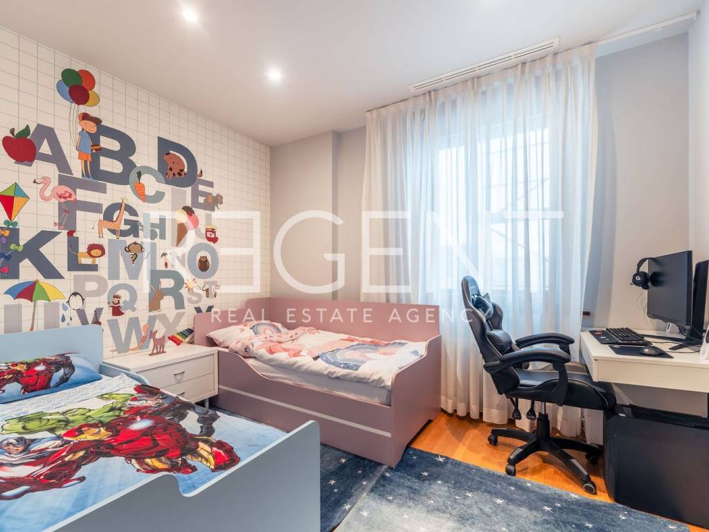 U samom srcu Zagreba na jednoj od najprestižnijih zagrebačkih adresa, u Gajevoj ulici, na četvrtom katu zgrade s liftom nalazi se prostran četverosoban stan površine 170 m². Lokacija ga čini izvrsnim izborom za obitelji, strane diplomate ili sve koji žele živjeti u vrhunskom gradskom okruženju te mu omogućuje potpunu blizinu središta grada, uz udobnost i privatnost koju pruža velika kvadratura. Zgrada datira iz 1938. godine i poznata je po kvalitetnoj gradnji, betonskim pločama i prepoznatljivoj arhitekturi toga vremena. Redovito je održavana, pod videonadzorom je, a ulaz je zaštićen sigurnosnim kodom. U dvorištu je osiguran parking, što je iznimna prednost u ovoj zoni. Objekt je tijekom potresa ostao neoštećen te posjeduje zelenu naljepnicu, što dodatno potvrđuje njegovu stabilnost. Stan ima promišljen raspored koji uključuje ulazni hodnik, gostinski toalet, vešeraj, tri spavaće sobe, od kojih svaka ima vlastitu kupaonicu, te veliki dnevni boravak otvorenog koncepta povezan s kuhinjom i blagovaonicom. Iz dnevnog dijela izlazi se na balkon, što prostoru daje dodatnu vrijednost i osjećaj prozračnosti. U stanu je provedena kompletna adaptacija, a korištena je vrhunska oprema. Grijanje je plinsko etažno, a sve prostorije imaju kvalitetne Daikin sustave klimatizacije integrirane u strop. Ugrađen je i Bang & Olufsen audio sustav, kao i alarm. U podrumu se nalazi pripadajuća ostava, što osigurava dodatni prostor za pohranu. Stan se nalazi svega nekoliko koraka od Trga bana Jelačića, što omogućuje brz pristup svim važnim gradskim sadržajima – trgovinama, kulturnim institucijama, javnom prijevozu i brojnim restoranima. Riječ je o jednoj od najpoželjnijih lokacija za stanovanje u Zagrebu, a kombinacija arhitekture, udobnosti i sigurnosti čini ovu nekretninu iznimno atraktivnom. Za sve dodatne informacije ili dogovor razgledavanja, slobodno nas konaktirajte.