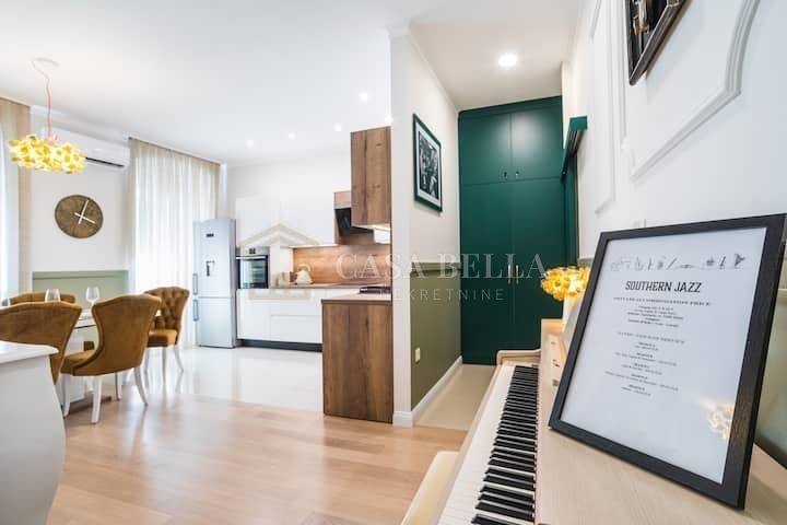 CASA BELLA iz ponude izdvaja moderan i izuzetno uređen stan na drugom katu manje stambene rezidencije u samom centru grada. Prostranih 65 m², stan odiše udobnošću i suvremenim dizajnom, a opremljen je svim detaljima potrebnima za ugodan i opušten život. Južna orijentacija pruža obilje prirodnog svjetla tijekom cijelog dana, dok pametni sustavi u prostoru omogućuju maksimalnu praktičnost i jednostavnost korištenja.