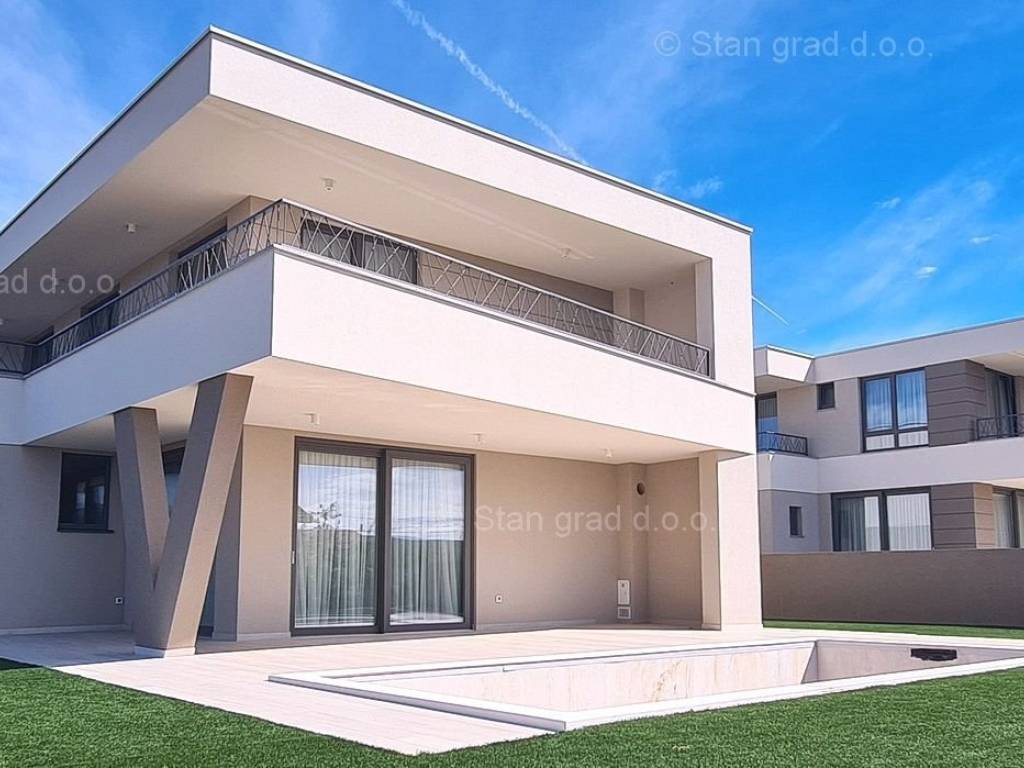 Prema vrsti objekta, građevina se može kategorizirati kao samostojeća kuća katnica s jednom stambenom jedinicom. Moderno projektirana kuća obuhvaća koristan prostor na sveukupno 2 etaže. Kuća obuhvaća ukupnu brutto površinu od 213 m2 (netto 173 m2). Navedenom površinom su obuhvaćeni ulazni prostor, dnevni boravak s kuhinjom i blagovaonom, jedna spavaća soba s kupaonom, zasebni wc, relax soba sa saunom, 2 spremišta i velika natkrivena terasa u prizemlju. Na katu se nalaze 3 spavaće sobe s izlazima na terasu, 2 kupaonice, garderoba. Interijer nekretnine je opremljen setom kvalitetne tehničke opreme i komadima dobrog namještaja. Vlasništvo ove kuće sadržava i pažljivo uređenu okućnicu posebno oplemenjenu bazenom od 25 m3 i sunčalištem te dva parkirna mjesta.