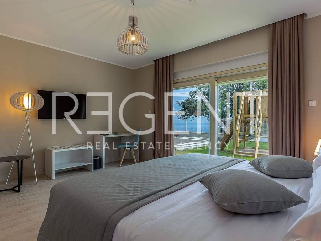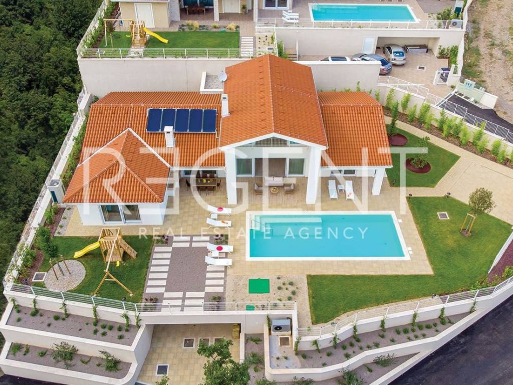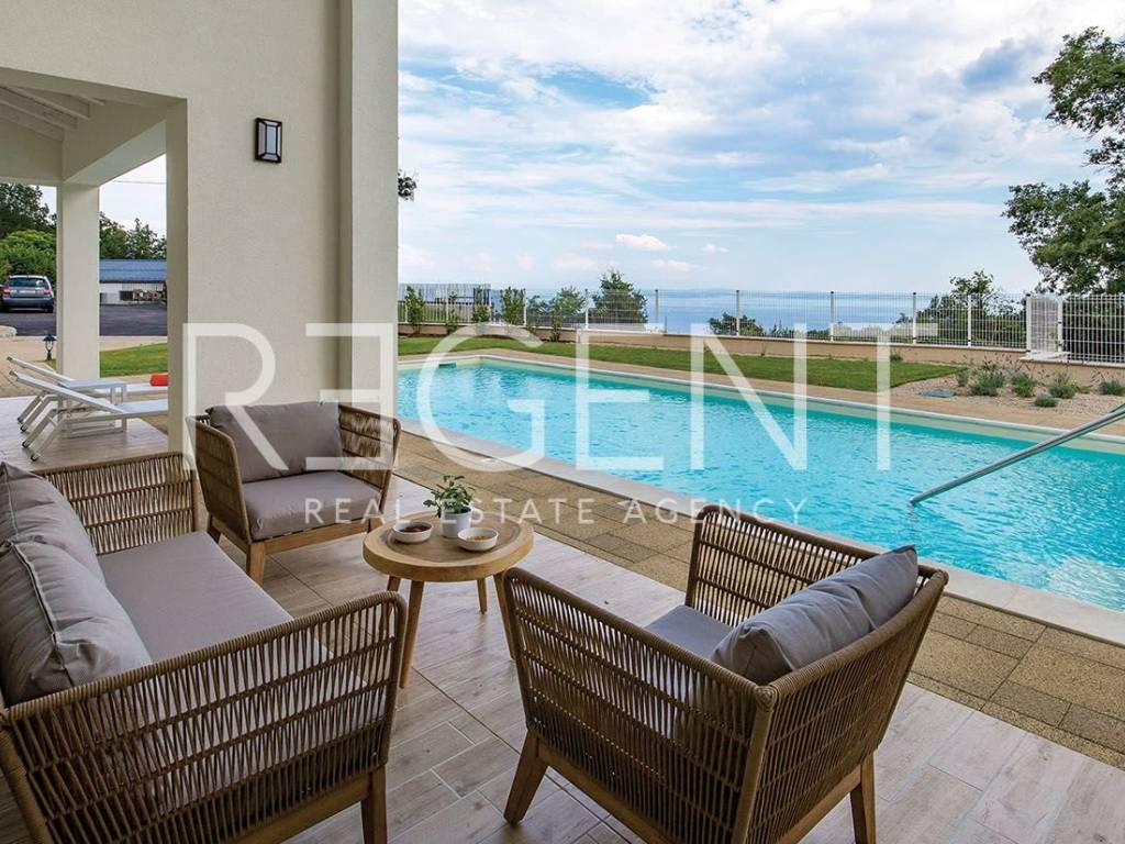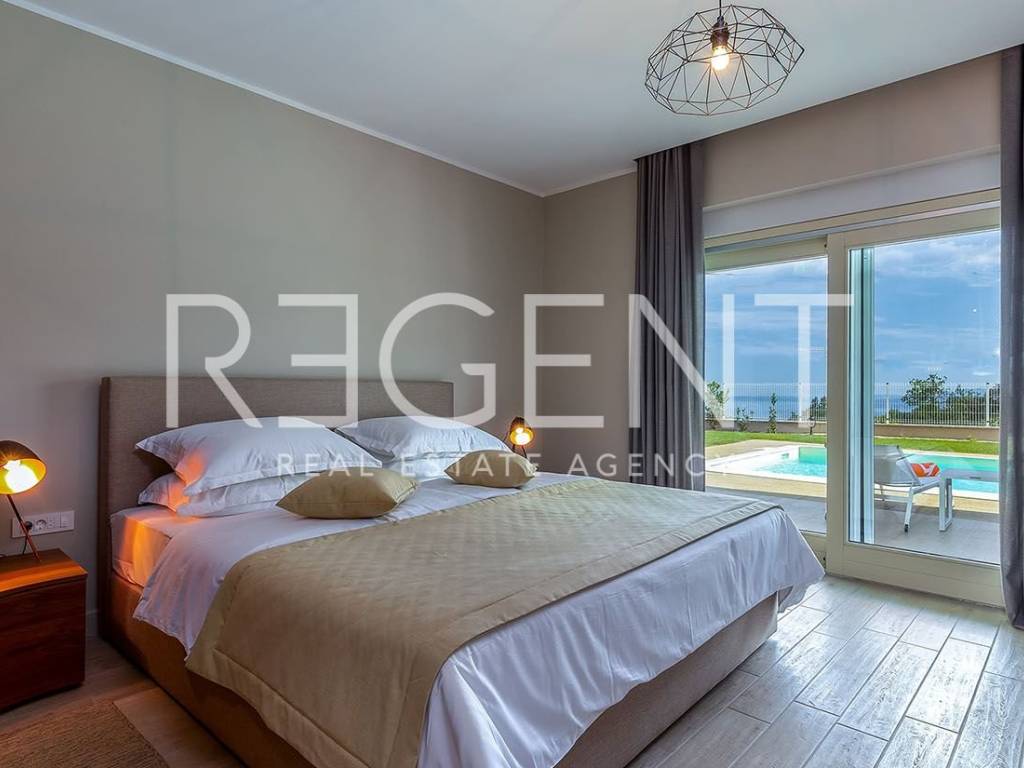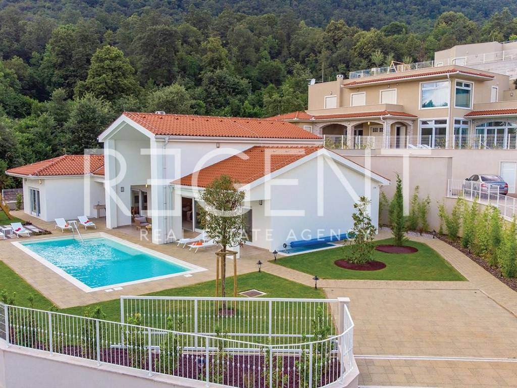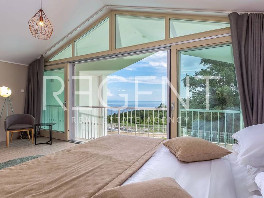 Ova vila jedinstveni je spoj mora i planine. Nalazi se na mirnoj lokaciji, daleko od gradske buke. Ima privatnost i visok stupanj sigurnosti. Vila je okrenuta prema jugu, s pogledom na more i okolni arhipelag. Povezuje modernu arhitekturu, vrhunsku tehnologiju i luksuzni dizajn. Ovaj objekt je jedinstven zbog karakteristične arhitekture, ekološki prihvatljive gradnje, napredne tehnologije, solarnog grijanja te smještaja u prirodi, na granici Parka Prirode Učke.Vila se nalazi na parceli od 1034 m2, stambene površine od 400 m2. Prostire se na tri etaže s četiri spavaće sobe i četiri kupaonice. Kuhinja i blagovaonica spoj su modernog dizajna i funkcionalnosti, čineći prostor dovoljno toplim da se osjećate kao kod kuće. Interijer je namješten za potpuno opuštanje, posebnim odabirom boja i ulaskom svjetla. Vrhunsko opremljena kupaonica daje još jednu dimenziju spa ugođaju. Vanjska terasa i konoba savršena su mjesta za objedovanje i druženje. Grijani bazen mjesto je u kojem ćete moći uživati tijekom dana i tijekom večeri.Vila je kategorizirana s 5 zvjezdica, a nalazi se u Veprincu – drevnom gradiću iznad opatijske rivijere. Prema povijesnim nalazima, nastao je vjerojatno na temeljima pretpovijesne gradine, a porijeklo imena obično se dovodi u vezu s biljkom veprinom koja ovdje raste u izobilju. Veprinac krasi netaknuta priroda i ugodna klima.