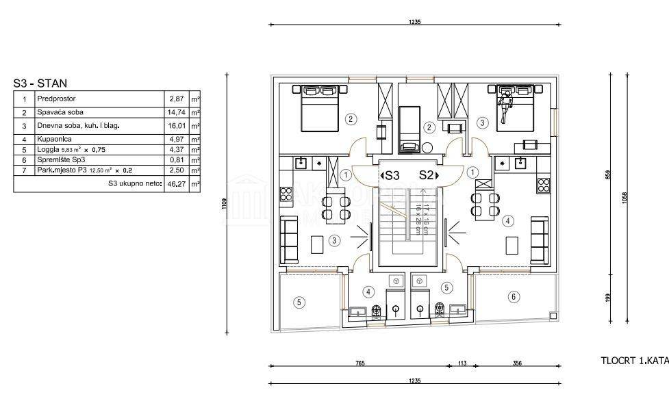 Pula, Šijana prodaje se jednosoban stan na prvome katu novo izgrađene zgrade. Zgrada je građena u skladu sa najnoviji standardima, vrhunske kvalitete gradnje I uporabom vrhunskih materijala. Stan se sastoji od jedne spavaće sobe, dnevnog boravka sa kuhinjom, kupaonica I velika teras ukupne kvadrature 46.27m2. Stanu također pripada jedno parkirno mjesto u zajedničkom dovorištu zgrade I ostava u prizemlju zgrade. Stan se nalazi u mirnom djelu gradaI u blizini svih važnih sadržaja I trgovačkih centra. Završetak gradnje I početak useljavanja je predviđen za 6. Mjesec 2026g.