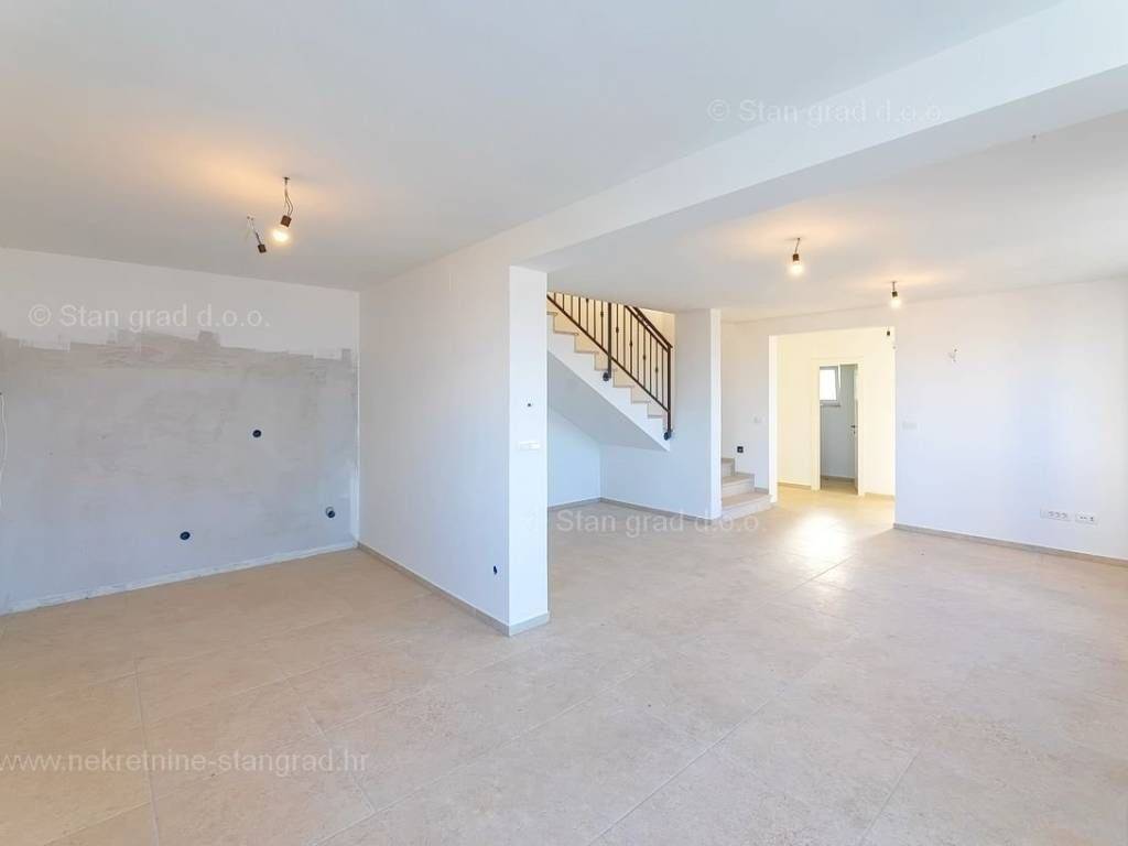 Gledajući strukturno, ovo je samostojeća kuća katnica s tavanskim prostorom. Vrlo lijepa građevina je izvedena na 3 prostorno iskoristive etaže. Kuća je strukturno podijeljena na 2 stambene jedinice + studio u prizemlju. Površina ove kuće iznosi ukupno 266 m2. Veća stambena jedinica površine 159 m2 na prvoj etaži ima prostrani dnevni boravak s blagovaonicom i kuhinjom, terasu, ostavu, wc i ured s vanjskim ulazom, a otvorenim stubištem se dolazi na drugu etažu gdje se nalaze 3 spavaće sobe, od kojih najveća ima vlastitu kupaonicu, garderobu i balkon, a druge dvije spavaće sobe koriste zajedničku kupaonicu. Također, na istoj etaži se nalazi praona koju je moguće prenamijeniti u sobu. Sklopivim ljestvama moguće je pristupiti potkrovlju. Manja stambena jedinica površine 47 m2 nalazi se na stražnjoj strani kuće i sastoji se od open space dnevnog boravka s kuhinjom, kupaonice i sobe.
