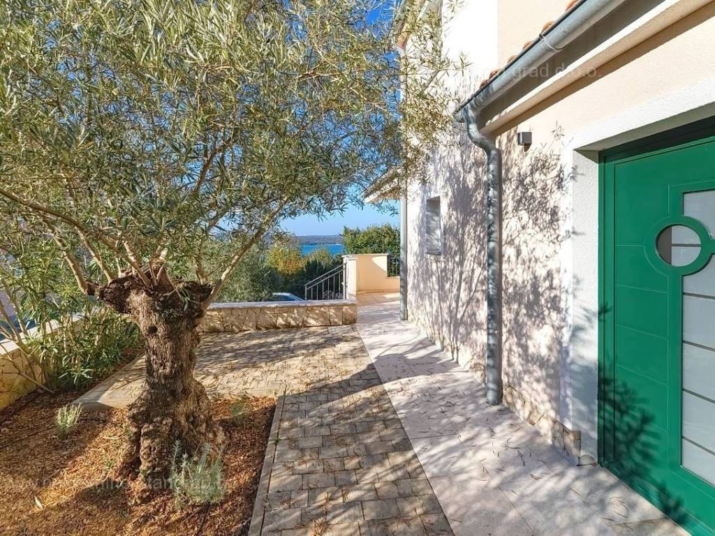 Ima prostrano dvorište i terasu s pogledom na more. U prednjem dijelu kuće u prizemlju nalazi se studio apartman koji se sastoji od jedne prostorije i kupaonice. Uz studio se nalazi i kotlovnica površine  5 m2. U kući je ugrađeno podno grijanje te je trenutno u procesu ugradnja dizalice topline. Okućnica je uređena u mediteranskom stilu, ispunjena mediteranskim biljem. Na prostranoj okućnici opisane nekretnine uređeno je komotno parkiranje više vozila. Osim navedenog, treba napomenuti da kuća ima prelijep panoramski pogled na more.