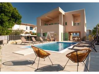 € 659.000Obiteljska kuća Malinska, Malinska-Dubašnica, Malinska-DubašnicaVila koja spaja luksuz, eleganciju i dašak mediteranske čarolije Na mirnoj lokaciji u okolici Malinske, na otoku Krku, smjestila se ova predivna vila koja nudi savršen spoj modernog dizajna i prirodnog okruženja. Okružena zelenilom i mediteranskim biljem, a udaljena samo nekoliko minuta vožnje od mora i centra mjesta, idealna je za opušten život ili kao investicija za turizam. Vila je uređena u boho stilu, s puno svjetla i pažljivo odabranim detaljima koji joj daju toplinu i karakter. U prizemlju se nalazi veliki dnevni boravak s izlazom na djelomično natkrivenu terasu i privatni bazen. Kuhin