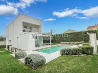 € 420.000Obiteljska kuća Poreč, Luka, PorečPredstavljamo iznimno modernu vilu, prekrasno smještenu na periferiji blizu Poreča, na granici zone gradnje unutar mirnog susjedstva. Ova izvanredna nekretnina smještena je na pozadini maslinika, utjelovljujući bit mediteranskog duha. Njena lokacija nudi savršenu ravnotežu između osame od užurbanog gradskog života i blizine osnovnih sadržaja, osiguravajući životni stil koji spaja mir i praktičnost. Protežući se na životnom prostoru od 98 m² na velikoj parceli od 567 m², dizajn vile obuhvaća otvoreni tlocrt, maksimizirajući prodiranje prirodnog svjetla kroz prostrane staklene zidove i pružajući
