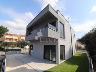 € 1.300.000Obiteljska kuća 200 m², novo, ŠibenikProdaje se luksuzna vila s bazenom u Vodicama, smještena na prostranoj parceli od 660 m². Stambena površina iznosi 200 m². Vila se nalazi 600 m od mora. U prizemlju se nalaze garaža od 23,50 m², kupaonica s vešerajem i saunom, hodnik, stubište, jedna spavaća soba s vlastitom kupaonicom te svijetao dnevni boravak povezan s kuhinjom i blagovaonicom. Na katu su tri spavaće sobe s vlastitim kupaonicama te walk-in garderoba, a dvije terase nude otvoren pogled na Jadransko more. Vanjski dio uključuje bazen od 28 m², jacuzzi na terasi, kameni roštilj, ostavu, tehnička soba, vanjski tuš i uređen vrt
