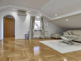 € 449.900Obiteljska kuća 359 m², Staro Brestje, ZagrebSamostojeća obiteljska kuća površine 359,71 m² u Sopnici, naselju smještenom nedaleko od Sesveta. Nalazi se na lijepoj i mirnoj lokaciji okruženoj zelenilom i obiteljskim kućama. Izgrađena je 1987. godine na parceli ukupne površine 530 m². Sastoji se od tri nadzemne etaže i jedne podzemne etaže. Podruma u kojem je smještena garaža i spremište, visokog prizemlja, prvog kata i potkrovlja. U dvorištu se nalazi i pečenjara površine 30 m². Kuća je lijepo i uredno održavana. Svi katovi su povezani unutarnjim drvenim stubištem. Prvi i drugi kat su potpuno uređeni, a visoko prizemlje je poludovršen