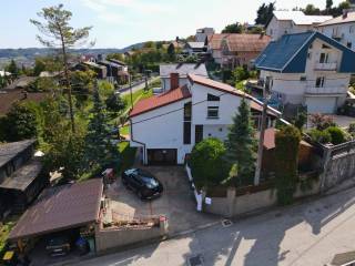€ 395.000Obiteljska kuća 348 m², SamoborNa prodaju je prostrana i kvalitetno građena obiteljska kuća ukupne površine 348 m2, smještena na parceli od 655 m2 u mirnom dijelu Samobora, svega nekoliko minuta od centra grada. Sastoji se od prizemlja, prvog kata i tavana. Tavan je moguće urediti u dodatni stambeni prostor. U prizemlju je predsoblje sa stubištem, kuhinja s blagovaonicom, soba za dnevni boravak, kupaonica i spavaća soba. Iz dnevnog boravka je izlaz na veliku, djelomično natkrivenu terasu. Pored navedenog je garaža i ljetna kuhinja koja ima izlaz na veliku terasu. Na katu je predsoblje, kupaona i 4 sobe, Jedna soba