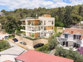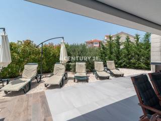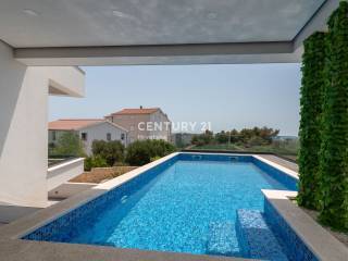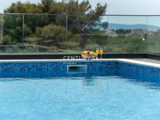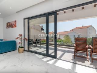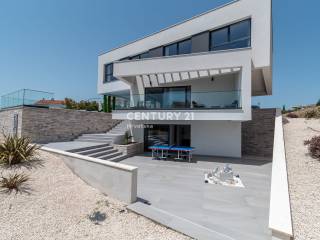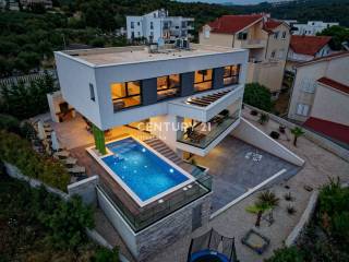€ 1.588.000Obiteljska kuća 263 m², OkrugPosredujemo u prodaji vrhunske, luksuzne vile smještene u mirnom dijelu Okrug Gornji, idealne za cjelogodišnji boravak, ali i kao izuzetno profitabilnu investiciju u turistički najam. Ova moderno projektirana vila izgrađena je 2021. godine na parceli od 732 m2, dok ukupna stambena površina iznosi 263 m2, uz više od 100 m2 balkona i terasa raspoređenih na tri etaže. Južna orijentacija osigurava obilje prirodnog svjetla tijekom cijelog dana te otvorene poglede prema moru i mediteranskom okruženju. Prizemlje – savršeno za druženja U prizemlju se nalazi impresivan otvoreni dnevni prostor