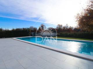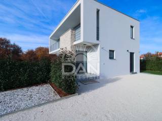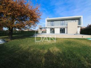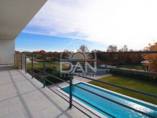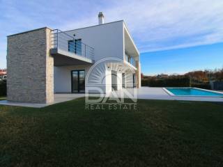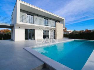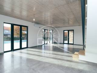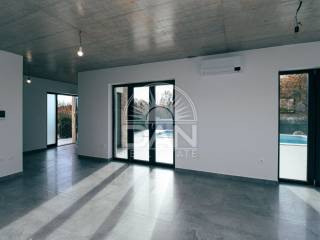€ 610.000Obiteljska kuća Nova Vas, Poreč, Kukci - Nova Vas, PorečIstra, Poreč, okolica – moderna vila s bazenom na iznimnoj mikrolokaciji U mirnom dijelu porečke okolice, svega nekoliko minuta vožnje od povijesne jezgre Poreča, nalazi se ova elegantna novogradnja s bazenom i prostranom uređenom okućnicom. Posebnost ove nekretnine je njezin položaj uz rub šume, idealan za ljubitelje prirode, kao i blizina uređenih biciklističkih staza koje povezuju okolna mjesta. Vila je smještena na parceli površine 942 m2, te se prostire na dvije etaže s ukupno 152 m2 neto stambene površine. U prizemlju se nalaze ulazni prostor i toalet za goste, te prozračan dnevni dio s