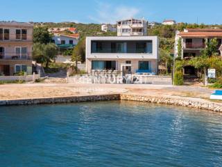 € 1.800.000Obiteljska kuća 400 m², novo, RogoznicaVila s bazenom prvi red uz more u Rogoznici. Ekskluzivna vila se sastoji od prizemlja i prvog kata na površini od 200m2 smjestenoj na parceli od 400m2 s bazenom od 40m2 te dva parking mjesta. U prizemlje se ulazi u predsoblje koje vodi do : prostranog i velikog dnevnog boravaka, kuhinje s staklenom stijenkom koja omogućava pristup na terasu uz bazen sa prekrasanim pogledom na more, spavaće soba sa kupaonicom, toileta i ostave. Unutarnjim stubištem se penje na prvi kat na kojem se nalaze: hodnik koji vodi do tri velike prostrane spavaće sobe s kupaonicom. Svaka soba ima svoj i