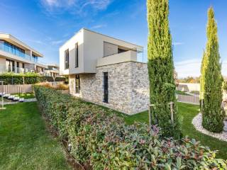 Agencija€ 1.190.000Obiteljska vila 220 m², novo, Savudrija, Zambratija, Crveni Vrh, UmagNa atraktivnoj lokaciji između mora , vinograda i brežuljaka u sklopu jedinstvenog , mirnog i izdvojenog resorta na prodaju nudimo ekskluzivnu vilu neto površine 220 m 2. Vila je smještena na zemljištu površine 403 m2 , udaljena svega 300 m od plaže. Nudi privatnost uz pristup vrhunskim pogodnostima odmarališta. Raspoređena na tri etaže ( suteren, prizemlje, kat) . U prizemlju vile smještene su dvije spavaće sobe sa vlastitim kupaonama , spremište i dva balkona. Na katu dnevni dio, kuhinja, blagaovaona, kupaona te prostrana terasa . U suterenu vile jedna spavaća sobe sa kupaonom , prostor za