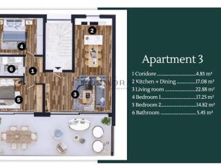 Trosobni stan novo, prvi kat, Centar, Luka, Finida, Umag