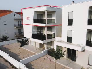 € 279.000Trosobni stan Vodice, VodiceVodice, Dalmacija, odličan stan koji se proteže kroz cijeli prvi kat nove, moderne zgrade. Lokacija u mirnom, istočnijem dijelu grada, u lijepom okruženju, u ulici sa vrlo malo prometa.Udaljenost do plaže ispred hotela Olympia i Imperial je cca. 600 m. Stan se nalazi u zgradi, prizemlje i dva kata, ukupno 3 stana. Stan S2 sastoji se od 2 spavaće sobe, kuhinje-blagovaone-dnevnog boravka, 1 kupatila, 1 vešeraja/kupatila, hodnika, ulaza, natkrivene terase. Stan je građen kvalitetno, opremljen je po najnovijim standardima; sa podnim grijanjem, elektro roletama i zaštitom od insekata, kvalitetn