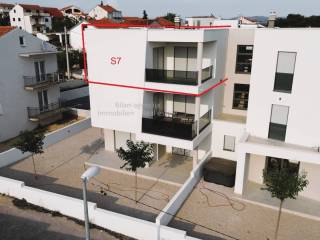 € 309.000Trosobni stan Vodice, VodiceZa prodaju nudimo luksuzan stan od 99 m2, na 2. katu moderne novogradnje u gradu Vodice, 309000 €. Ima lijepi pogled na more i udaljen je od mora i Plave plaže samo 350 m. Također, u blizini je javnog gradskog prometa, dućana, pekare, kina, kazališta. Stan je odličnog rasporeda, prostorije su svjetle i prozračne. Sastoji se od hodnika, kupatila, jednog posebnog wc-a, 2 spavaće sobe, prostrane kuhinje. Blagovaona i dnevni boravak otvorenog koncepta dodatno su velikim kliznim vratima povezani sa lijepim balkonom koji je većim dijelom natkriven. Pogled na more. Jugozapana orijentacija. Stanu p