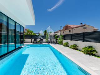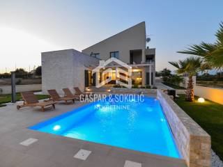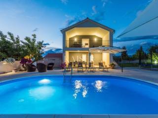 Agencija€ 899.000Obiteljska vila Put Kantunina 62, VrsiPotpuno namještena vila spremna za useljenje – pogled na planine, grijani bazen sa slanom vodom, samo 650 m od plaže Bonus: Besplatna usluga čišćenja tijekom cijele 2026. godine! Na prodaju je moderna i elegantna vila ukupne stambene površine 220 m², smještena u mirnom dijelu naselja, samo 650 metara od mora. Kuća je potpuno namještena i spremna za bezbrižno useljenje. Završena je i dobila uporabnu dozvolu 2023. godine. Raspored prostorija Prizemlje: Prostrani dnevni boravak povezan s kuhinjom i blagovaonicom (open space) Spavaća soba WC Hodnik Tehnička prostorija / spremište – s pose
