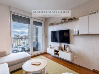 € 419.540Trosobni stan Kaštel Stari, KaštelaKaštela, novogradnja komforan luksuzna trosoban stan smješten na drugom katu urbane zgrade s liftom i podzemnom garažom, ukupne tlocrtne površine 101,1 m2, od čega je zatvoreni stambeni dio 85 m2 i veliku natkrivena terasu s žardinjerama 16,1 m2.Sastoji se od: kuhinje s blagovaonicom te dnevnog boravka otvorenog tipa (33,3 m2), hodnika, tri komforne spavaće sobe (jedna s vlastitom en suite kupaonicom te jedna zamišljena kao garderoba) dvije kupaonice te logga od 13,5 m2 na jugu.Orijentacija stana je jug- istok, velike staklene stijenke što osigurava obilje prirodnog svjetla i prozračnost što ć