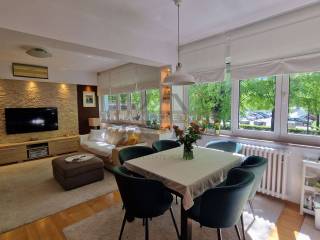 € 708.000Četverosobni stan Maksimir, Dotrščina, ZagrebZagreb, Maksimir - Prodaje se useljiv četverosoban stan u novogradnji na Jordanovcu. Nalazi se u prizemlju manje zgrade s liftom, a pripada mu vrt površine 150 m2. Grijana površina stana iznosi 88.18 m2, a neto korisna površina iznosi 103.57 m2 Stan se sastoji od: - ulaza (4.48 m2) - hodnika (4.93 m2) - dvije kupaonice (3.57 m2 i 2.84 m2) - WC-a (2.47 m2) - tri spavaće sobe (10.08 m2, 9 m2 i 8.64 m2) - dnevnog boravka s kuhinjom i blagovaonicom (41.99 m2) - natkrivene terase (11 m2) - vrta (147 m2) Zgrada je građena prema najvišim standardima gradnje, s armiranobetonskom konstrukcijom, podni