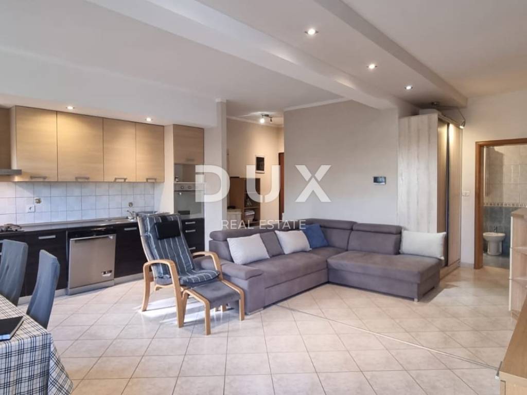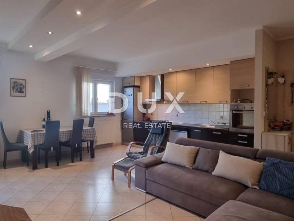 The subject property is located in a larger residential building located in the immediate vicinity of the Pula bypass. The apartment is located on the ground floor of the building and has a total area of 81.58m2. It consists of an entrance hall, a spacious living room connected to the kitchen and dining room, two bedrooms, a bathroom and a terrace with access to a private, fenced yard of 50m2.